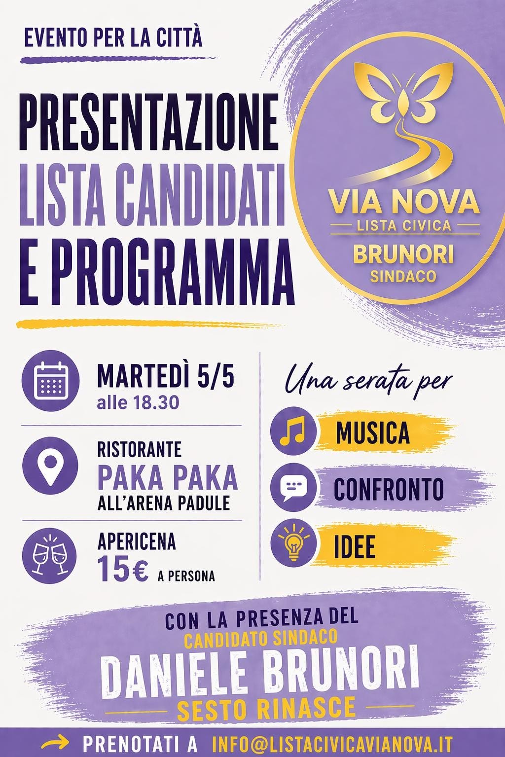 La lista civica Via Nova invita tutti i cittadini a un evento fondamentale per il futuro della nostra comunità: la presentazione ufficiale della squadra dei candidati e del programma elettorale per Sesto Fiorentino.