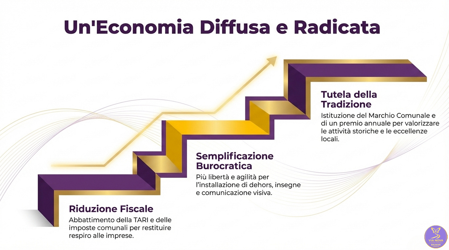 Economia e Lavoro: Sosteniamo le imprese locali con la riduzione della TARI e il progetto “Apri a Sesto”, incentivando il recupero dei fondi commerciali sfitti nel centro storico e nei quartieri.