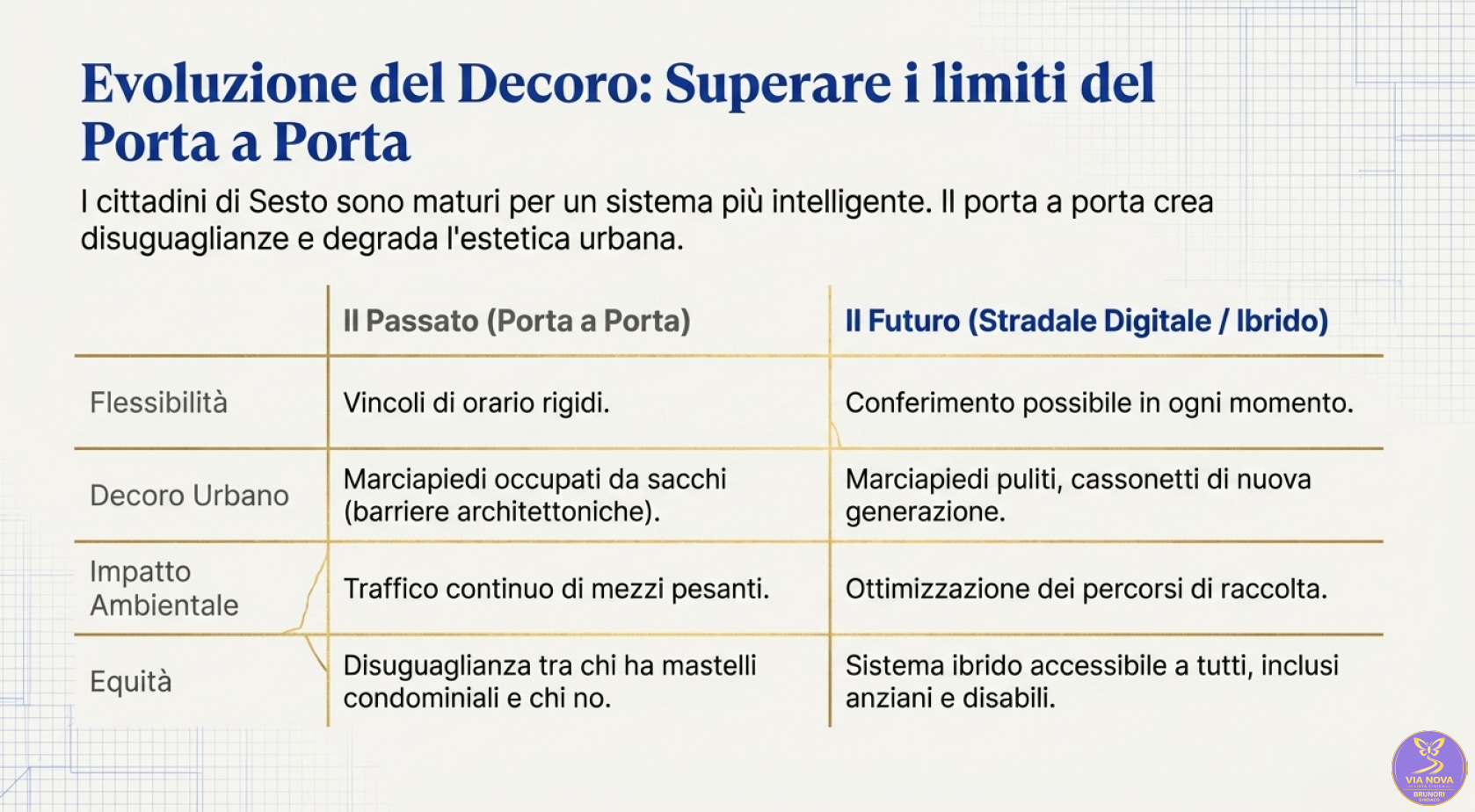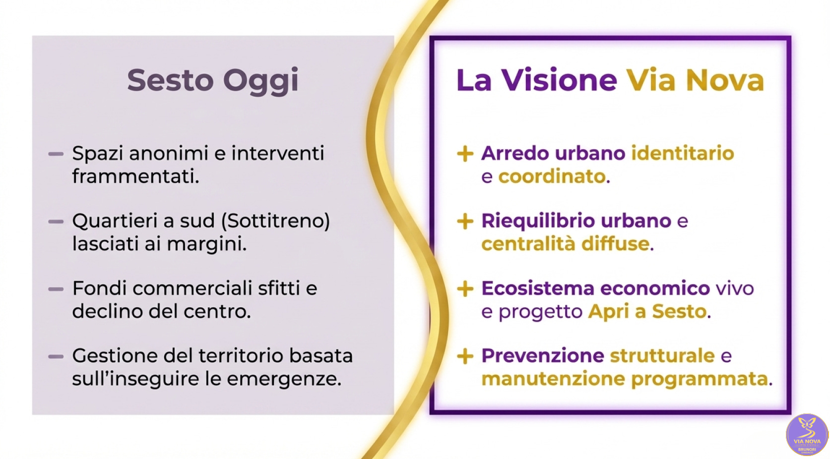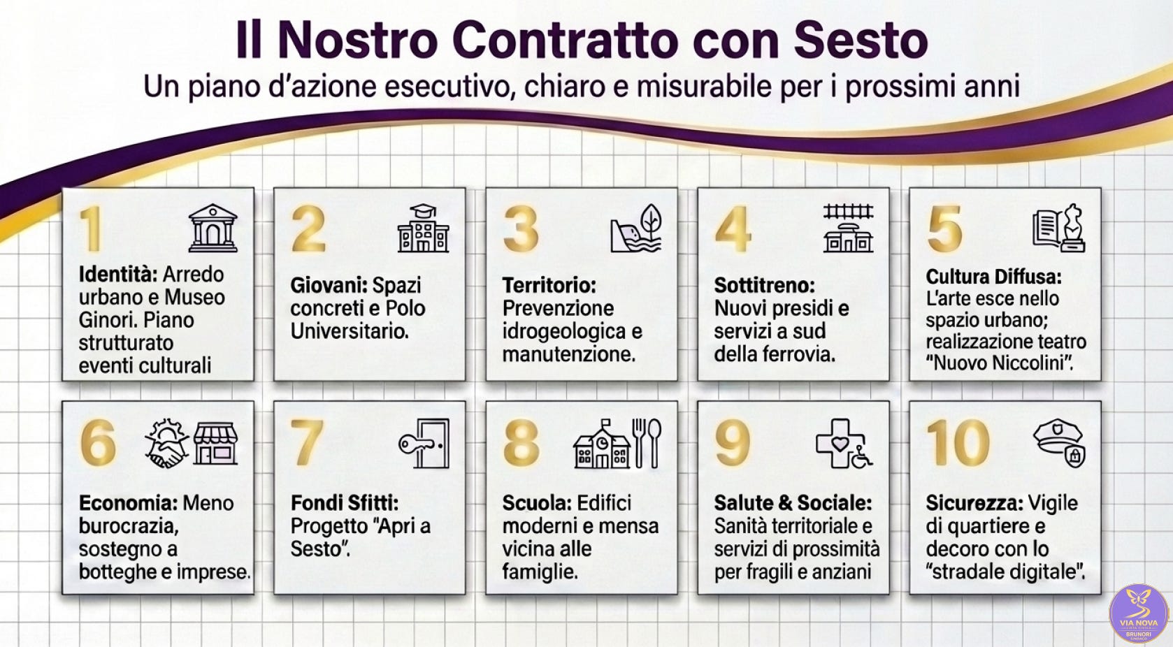 Nelle slide che seguono, presentiamo i punti cardine del nostro programma elettorale per le Elezioni 2026 : un piano d’azione esecutivo, chiaro e misurabile per restituire alla città la bellezza e la qualità della vita che merita.