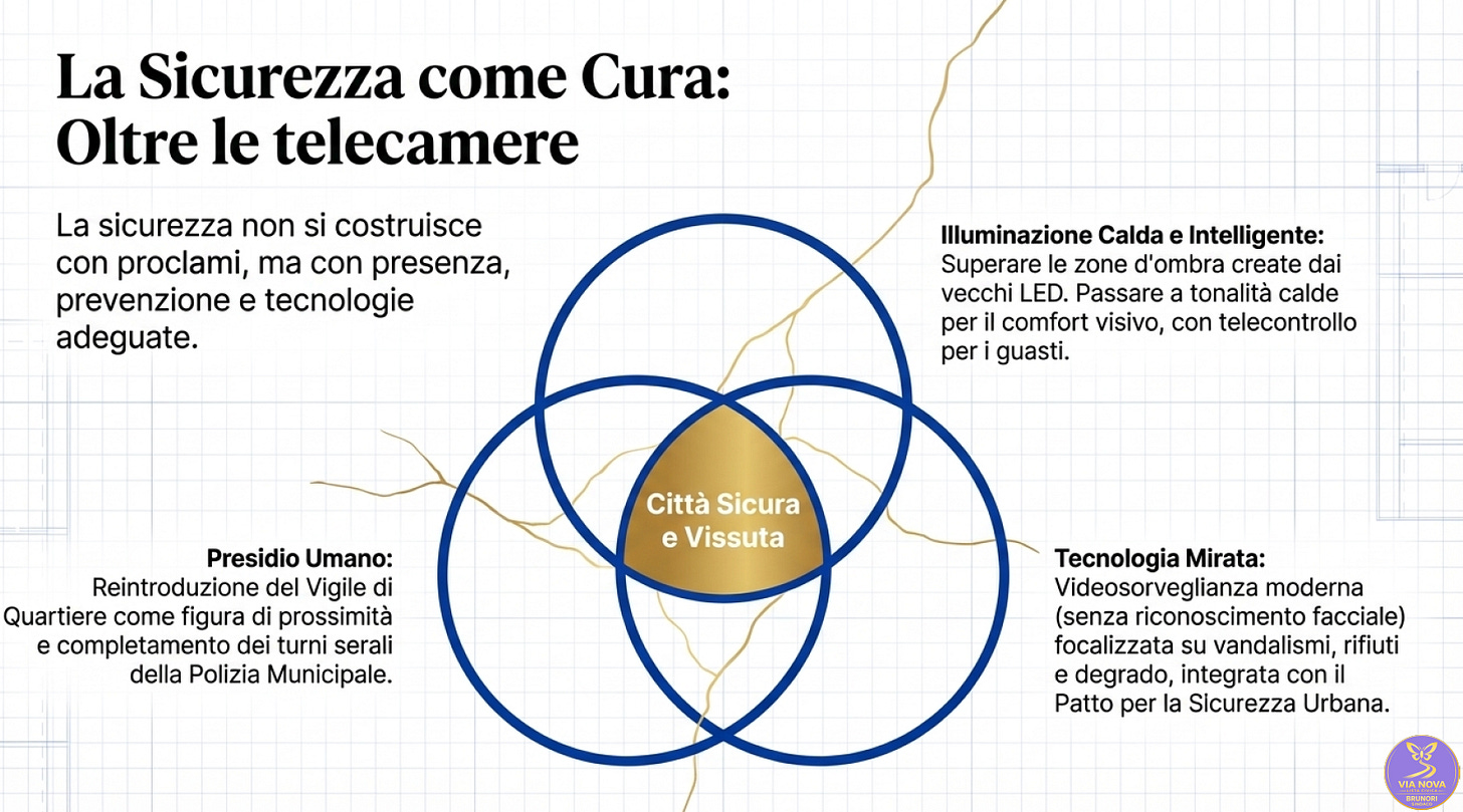 Sicurezza e Decoro: Una “Città Sicura e Vissuta” si costruisce con il presidio umano del Vigile di Quartiere, un’illuminazione intelligente e il passaggio allo “stradale digitale” per superare i limiti del porta a porta.